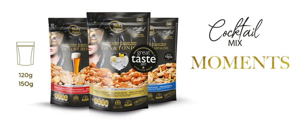 A linha “MOMENTS” destina-se aos apreciadores de bebidas de qualidade como Gins, Cervejas , Champanhes e Vinhos brancos, que pedem para ser acompanhados por um snack aperitivo que permita realçar ainda mais o seu sabor, criando experiências inesquecíveis para os seus hóspedes, que ficarão com a memoria de momentos únicos passados no seu hotel, sempre a recordar com prazer!