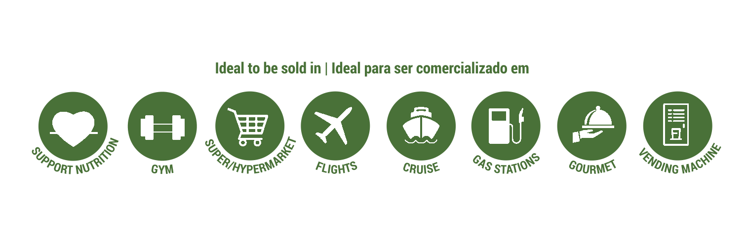 Um snack tendência grab&go, que lhe proporciona um estilo de vida saudável, com alto teor de proteína e fibra, sem adição de açúcares, não-gmo, adequado para vegetarianos e ao mesmo tempo super delicioso.